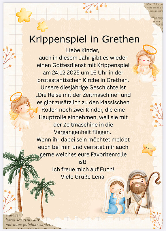 Der genaue Beginn, Uhrzeit und Wochentag bitte dem nächsten Gemeindebrief, dem Amtsblatt oder der Rheinpfalz entnehmen.